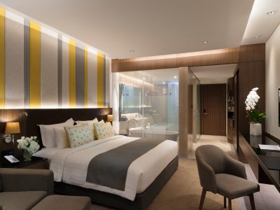 Rooms begin with a generous 40sqm of floor space, and each room features a king or twin beds and luxury bathroom